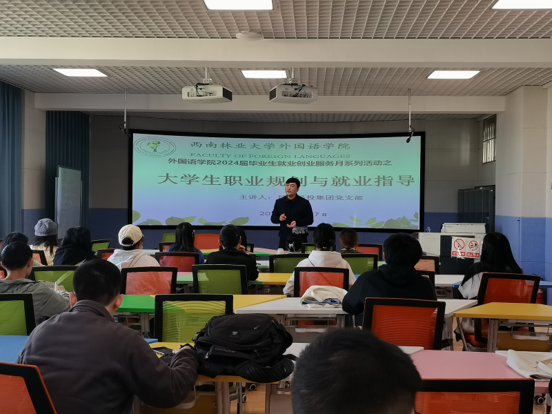为帮助学生更直接了解职场现状,提升就业竞争力,11月27日,外国语学院邀请昆明经济技术开发区投资开发(集团)有限公司党支部到校开展“就业能力提升”活动。云南自贸人资集团董事长陈映洁、业务部经理杨春昆、学院党委副书记李法营、学工团队成员与同学们一起参加活动。