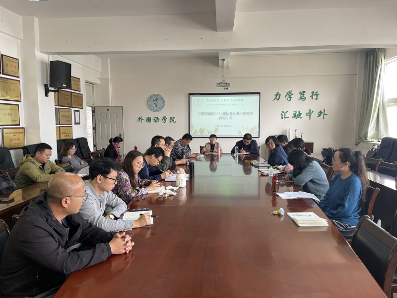 10月26日,外国语学院举行2024届毕业生就业创业服务月启动仪式。学院党委书记姜丽红,辅导员、2024届毕业生班全体班主任参会,活动由学院党委副书记李法营主持。