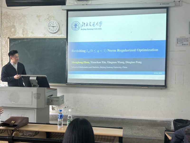 近日,北京交通大学数学与统计学院罗自炎教授和周声龙教授应邀分别为我院师生作了题为《Group SLOPE Penalized Low-Rank Tensor Regression》《Revisiting Lq (0 ≤ q < 1) norm regularized optimization》的专题讲座。活动由数理学院副院长张雁主持,数理学院和大数据智能工程学院的师生参加讲座。