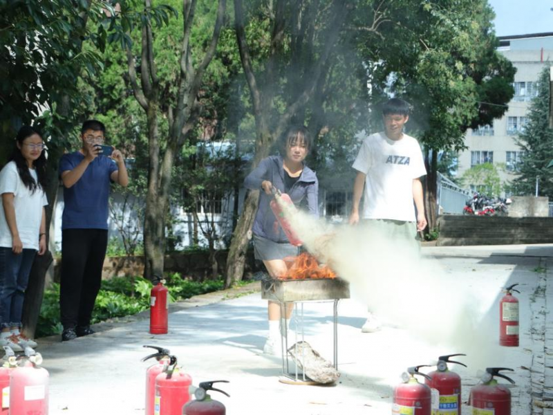 上午10时,随着消防警报的响起,正在实验室开展实验的师生在消防安全疏散员的引导下,从实验室内各个安全通道,迅速有序向安全空地疏散。1分钟后,师生全部疏散到安全地带。随后,教师徐华伟向全体师生讲授灭火器的正确使用方法以及在逃生过程中需要注意的事项,并开展消防灭火演练。