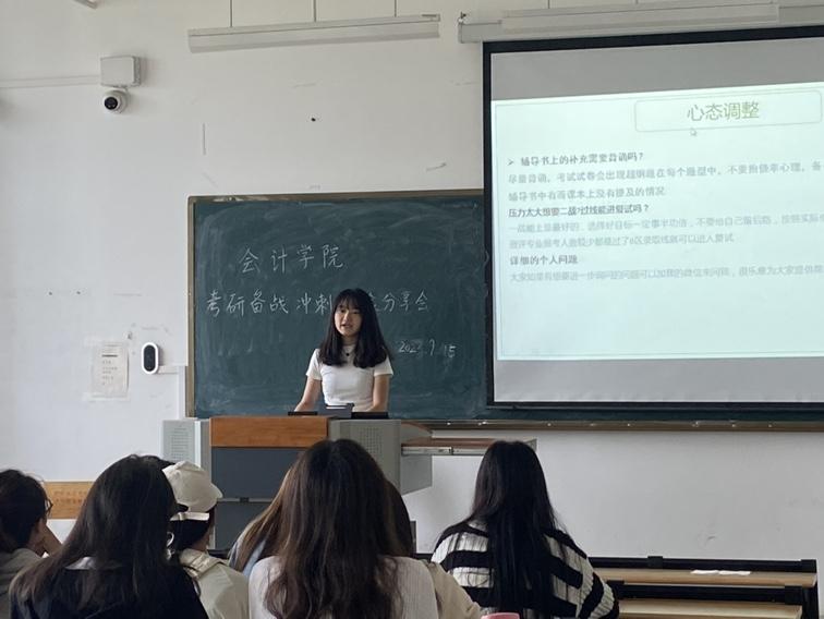 分享结束后,参会同学围绕备考中遇到的困难和问题进行交流,此次会议给即将考研的同学提供了宝贵的经验,帮助考研学子以积极乐观的心态迎接挑战。(来源:会计学院/文:明芙旭/图:王雨彤/审核:张金丽、李谦/初审:李颖/复审:史桓恺/终审:张武先/责任编辑:史桓恺)