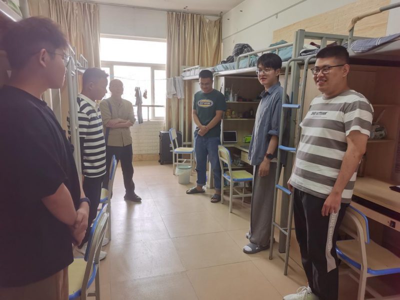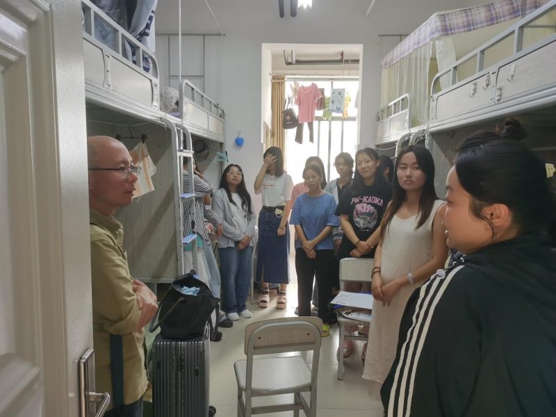 为全面了解新生入学情况,帮助新生调整心态,更快适应大学校园生活,8月29日下午,马克思主义学院党委副书记王海亭带领学院辅导员、班主任走进新生宿舍,与2023级马克思主义理论专业研究生深入交流,了解学生目前的住宿和适应情况。
