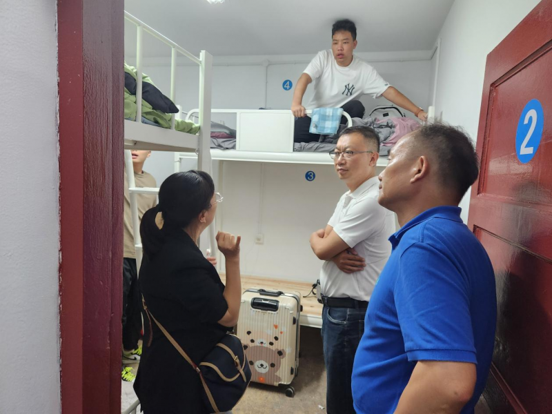 学院老师一行走进新生宿舍,了解同学们的生活环境,并与新生深入交流。王永生亲切地和同学们拉起了家常,走访场面温馨和乐。