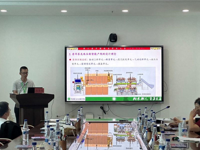 在智能机器人分会场,王远教授作题为《普洱茶龙珠压制和筇竹细长槽开切智能产线》 的学术报告,并与参会院校就师资、专业、学科建设等方面进行了深入交流。