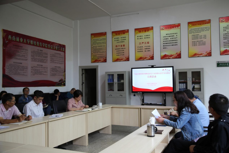 学院党总支书记肖辉作题为《习近平新时代中国特色社会主义思想的世界观和方法论》的专题宣讲,副书记杨司薇、副院长姜磊、詹卉分别以《深入学习< 习近平关于调查研究论述摘编>》《习近平新时代中国特色社会主义思想是党和国家必须长期坚持的指导思想》和《以高质量发展推进现代化云南建设》为题进行宣讲。