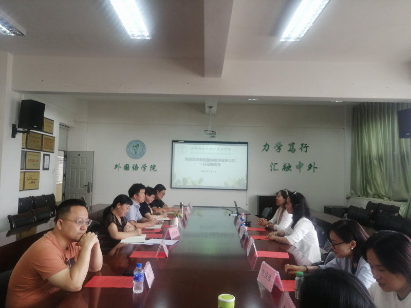 7月7日,外国语学院与昆明莫琳翻译服务有限公司举行会谈。学院党政领导班子成员、教学督导、学科点负责人、各本科专业负责人和学科秘书参加会议。会议由学院院长何新元主持。