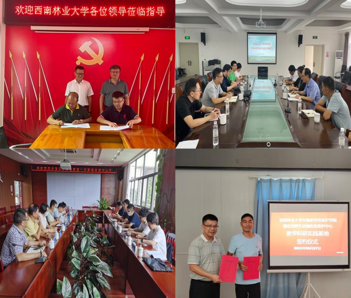 学院与德宏州野生动物收容救护中心、云南铜壁关省级自然保护区管护局签订教学科研实践基地合作协议。与德宏州野生动物收容救护中心就人才联合培养、野生动物繁育技术以及网上动物园建设等达成共识。在前期合作基础上,学院将加强与云南铜壁关省级自然保护区管护局在就业与学生培养、科研与项目申报、科普宣教等方面的合作。云南省生态环境厅巡视员夏峰、德宏州林业和草原局党组书记、局长杨正华见证签约仪式,对学院到德宏开展生物多样性保护工作表示赞赏,希望合作能落地见效。