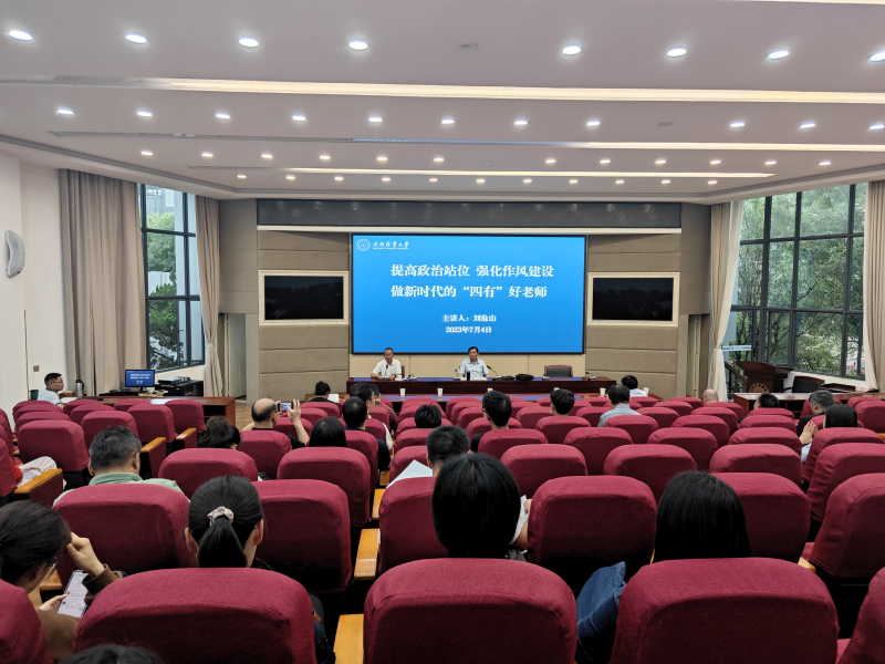 为加强教师队伍师德师风建设,全面提升教师的思想政治素质,7月4日,马克思主义学院邀请云南省教育厅关工委常务副主任、云南新兴职业学院校长刘沧山教授作题为《提高政治站位,强化作风建设,做新时代的‘四有’好老师》的主题讲座,马克思主义学院与文法学院全体教师参加培训,校党委副书记魏宏出席并主持会议。