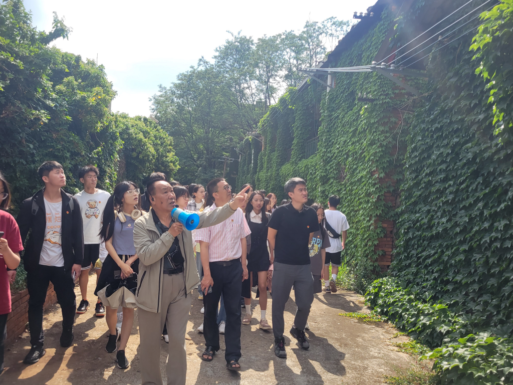 曾经在楸木园校区学习工作过的张炳耀老师带领青年学生参观了教职工宿舍区、篮球场,介绍了kaiyun体育师生在这里艰苦奋斗的历史。他围绕“青年的理想与使命”“kaiyun体育网页登录入口的过去与未来”展开讲解,勉励现场青年代表将个人的奋斗目标与学校的发展、祖国的繁荣联系在一起。