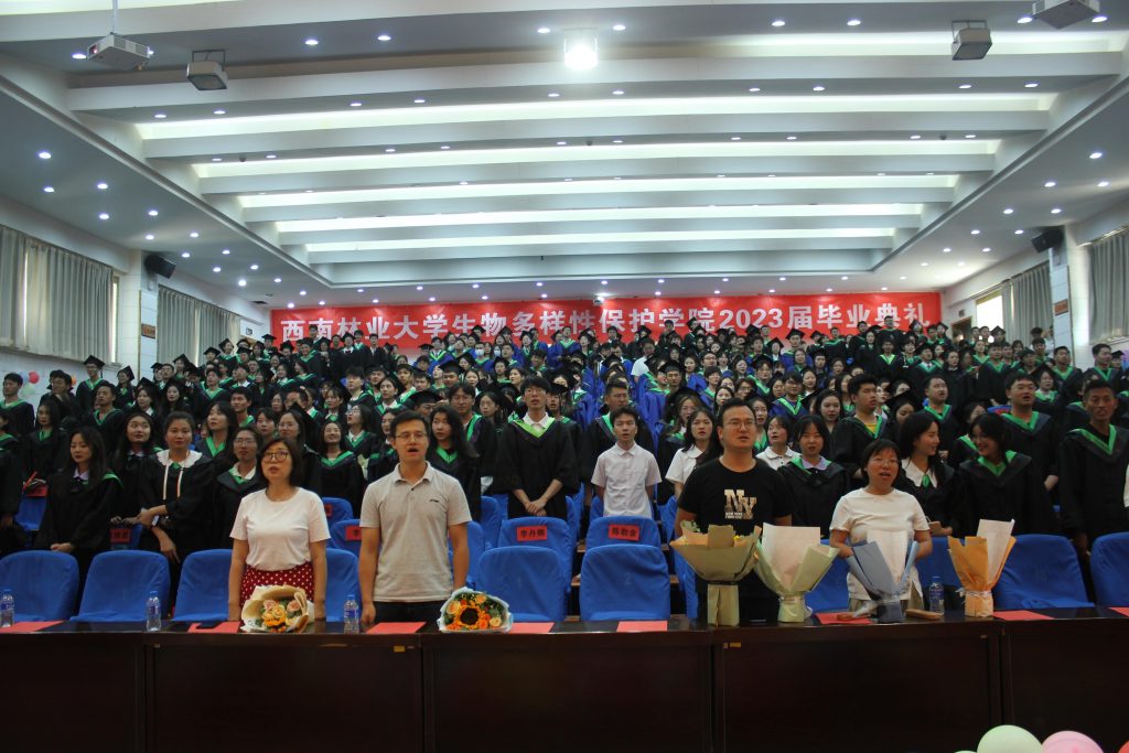 5月30日,生物多样性保护学院在图书馆大报告厅举行2023届毕业典礼。生物多样性保护学院党政领导班子、学位分委员会委员、学院教授、毕业班班主任和2023届全体毕业生参加活动,典礼由学院党委副书记唐甜甜主持。