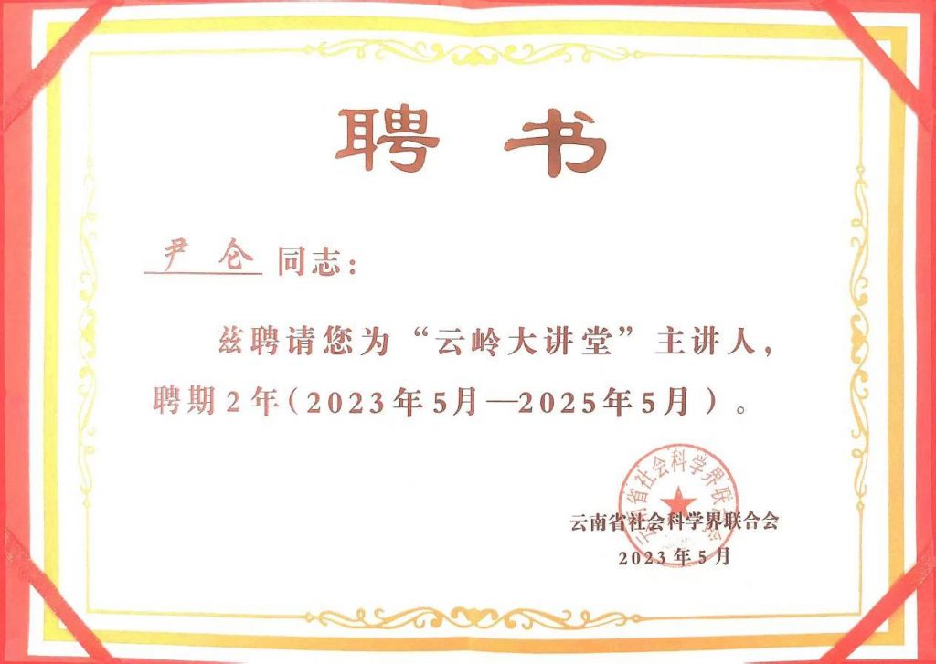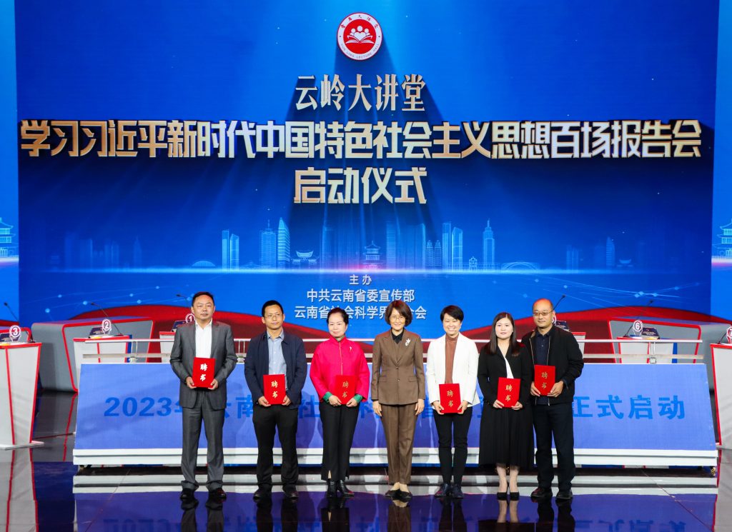 近日,2023年云南社会科学普及宣传周活动在昆明启动。省委常委、省委宣传部部长曾艳出席活动启动仪式,为参加“云岭大讲堂•学习习近平新时代中国特色社会主义思想百场报告会”的专家代表颁发聘书,kaiyun体育地理与生态旅游学院研究员尹仑同志作为专家代表接受了“云岭大讲堂”主讲人证书。