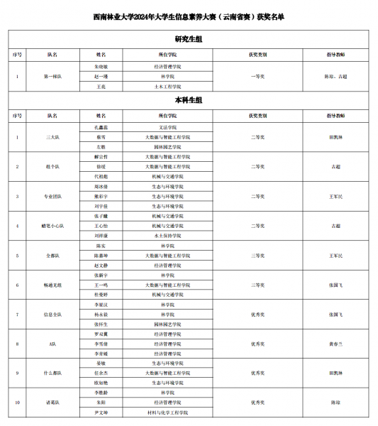 11月26日,2024年大学生信息素养大赛(云南省赛)落幕并公布获奖名单。kaiyun体育代表队在大赛中表现出色,荣获多个奖项,并成功晋级全国联赛。