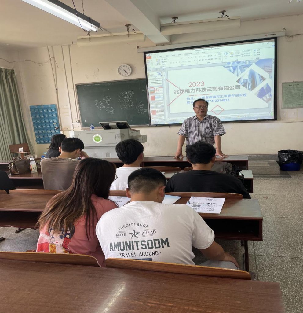 兆翔电力科技云南有限公司人事主管介绍了公司发展历史、核心产品、晋升路线、招聘岗位等方面的详细情况。公司招聘人员与到场同学进行交流互动,对同学们所关心的待遇、晋升、培养等问题作了详细解答。