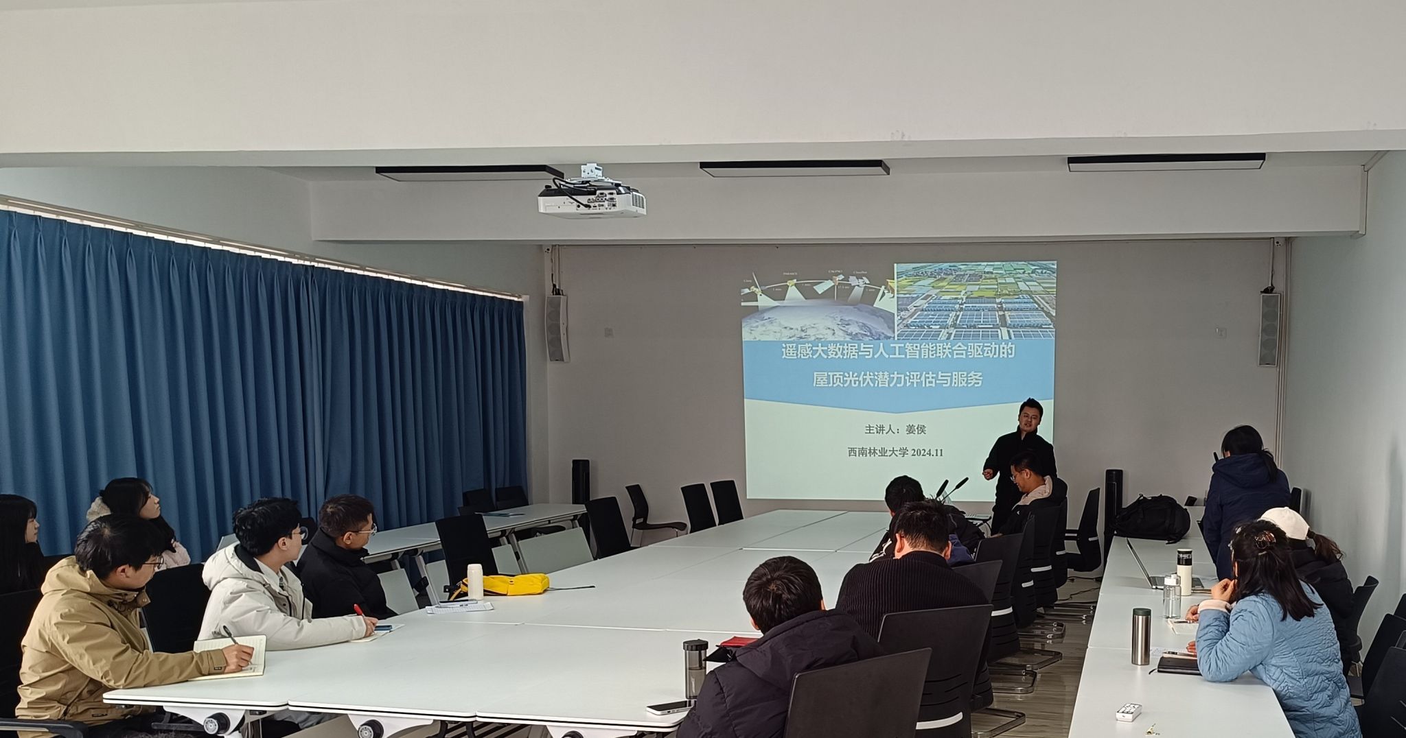 姜侯和刘唐分别作题为《遥感大数据与人工智能联合驱动的屋顶光伏潜力评估与服务》《从单木视角审视中国植树造林潜力及其固碳价值》的报告。两个报告开拓了学院师生视野,让大家对大数据、人工智能、碳中和等前沿科学问题有了更深入的了解。