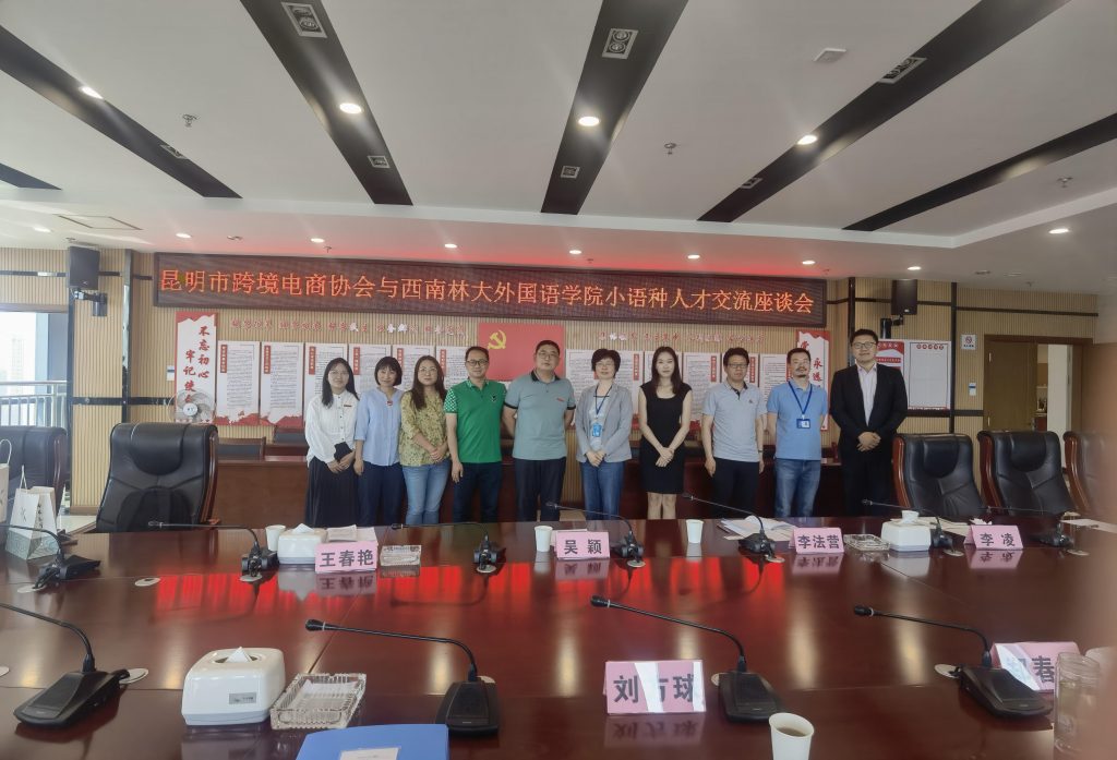 4月28日,外国语学院党委副书记李法营一行6人赴昆明市综合保税区开展校企合作交流暨访企拓岗活动。昆明综合保税区开发运营管理有限责任公司副总经理、昆明市跨境电商协会会长郑春芳,昆明综合保税区管委会公共事务局负责人朱江波,昆明市跨境电商协会秘书长朱文毅,副秘书长刘方球等参加活动。