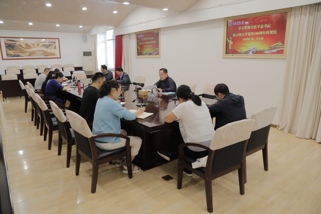 4月21日,职能部门第二党支部开展主题党日活动,集中学习习近平总书记致云南大学建校100周年的贺信,宣传部、统战部、校史馆(档案馆)全体教师参加学习会议。支部书记王泾领学贺信内容,与会党员结合各自工作学习实际,谈认识和体会。