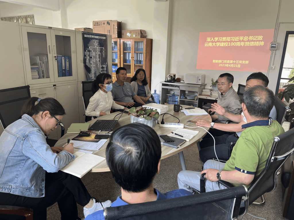 4月21日,职能部门党委第十三支部召开专题学习会议,深入学习习近平总书记致云南大学建校100周年的贺信,发展规划处、研究生院全体教师参加学习会议。支部书记、发展规划处处长何承忠传达学校党委扩大会议专题学习情况及有关要求,发展规划处副处长张志华领学贺信内容。