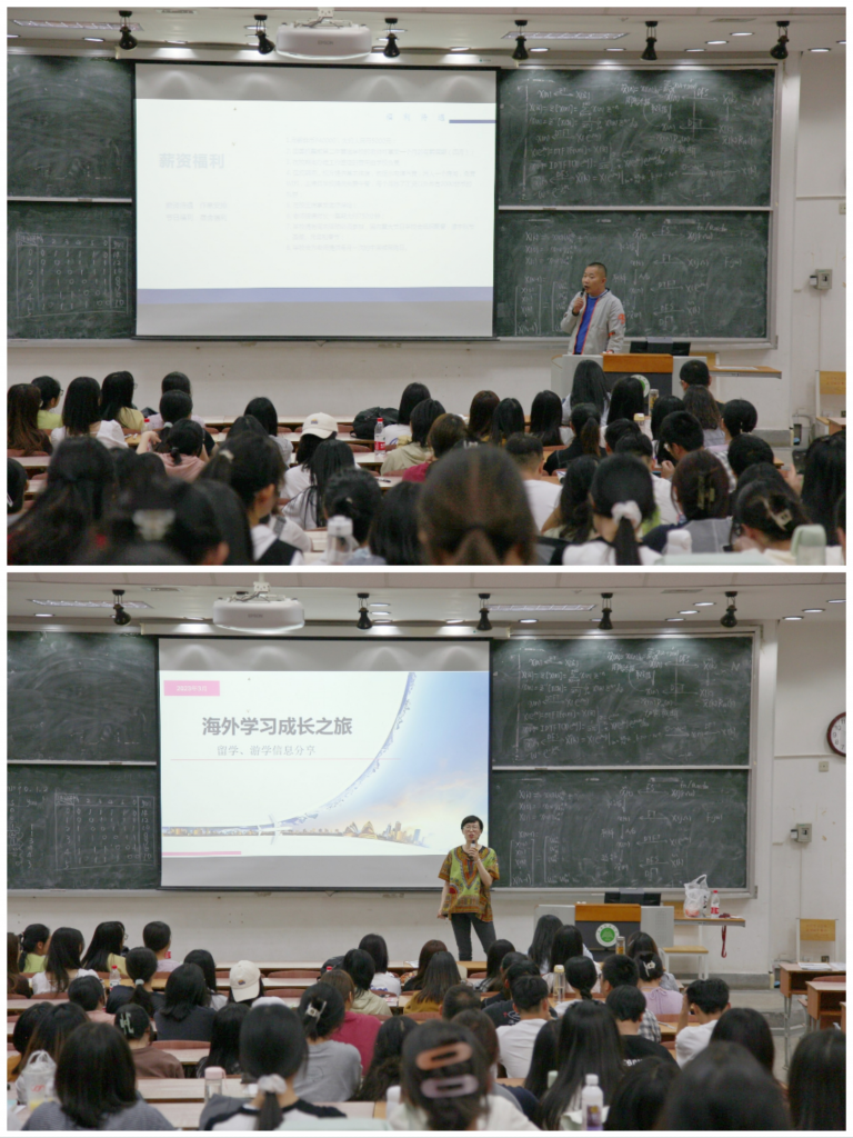 唐文涛就菲律宾光启学校的发展历程、项目由来、招聘条件和薪酬待遇作了详细介绍,同学们对“海外华文教师”这一职业有了更深入的了解。朱海侠以斯旺西大学的硕士申请和突尼斯短期游学项目为例,介绍海外升学与短期游学,分享了自己的职业发展历程、海外见闻,鼓励同学要勇于挑战自己、积极尝试。