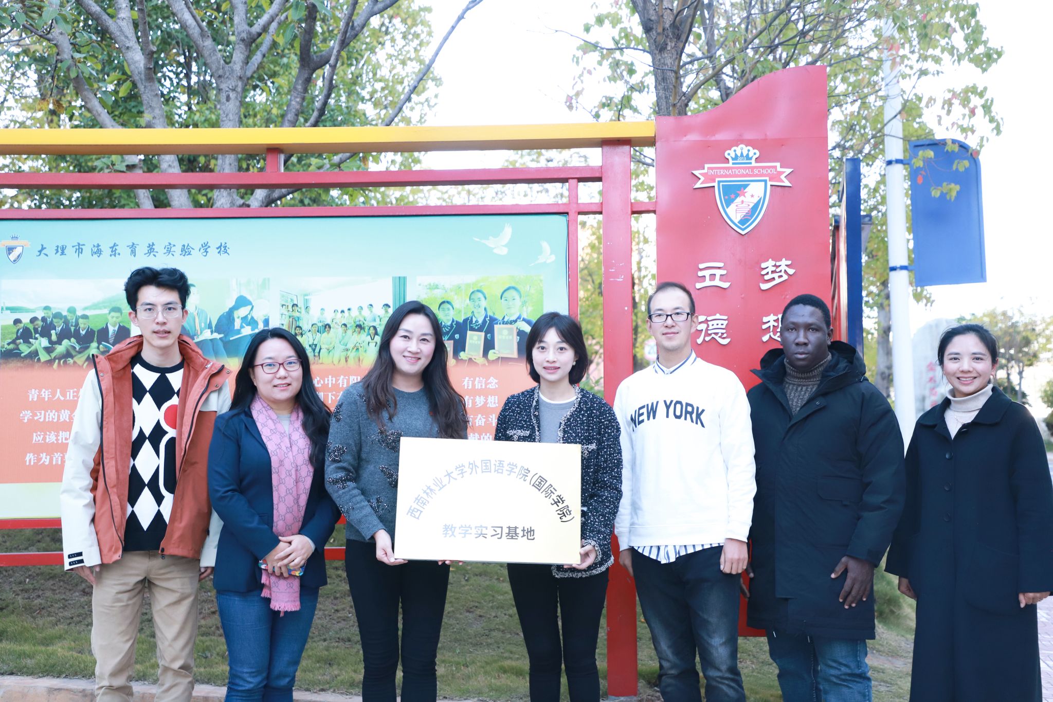 12月3日,外国语学院(国际学院)党委副书记宋琳带队赴大理海东育英实验学校签订“教育实习合作协议”,并在该校4个教学分校分别挂牌建立“教学实习基地”。