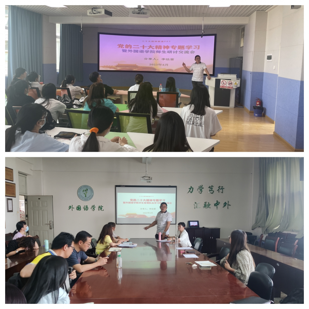 4月15日,外国语学院开展学工系统“二十大·二十讲”主题宣讲活动。活动针对辅导员、班主任、学院学生分两场进行,由学院党委副书记李法营主讲。学院党委书记姜丽红参加辅导员、班主任宣讲专场,学院100余名师生参加活动。