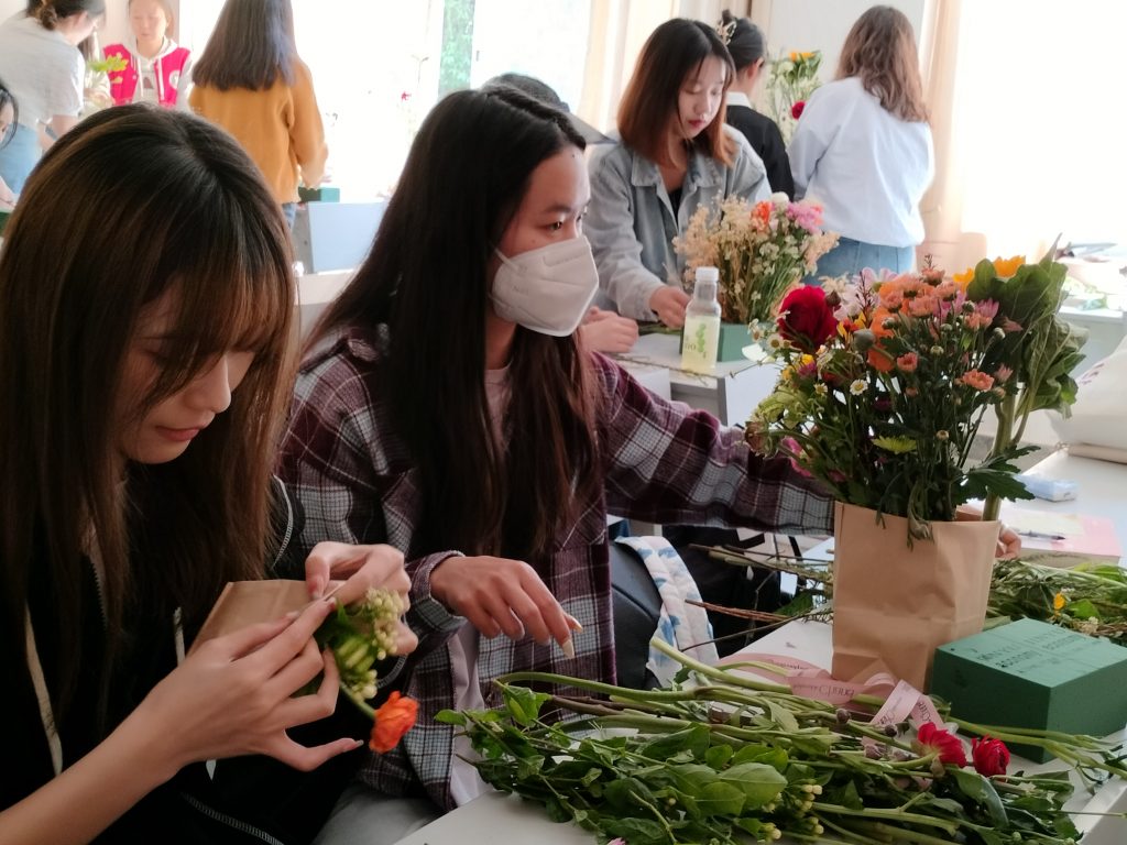 在活动中,学院为同学们提供了种类繁多,鲜艳美丽的花卉,同学们以小组或者个人为单位挑选出自己心仪的花卉,将它们从星星点点编织成一束令人心驰的“白月光”。过程是喜悦的,结果是充实的,在同学们完成自己的作品后,学院评选出一等奖、二等奖、三等奖及优秀奖,奖励同学们的优秀作品。