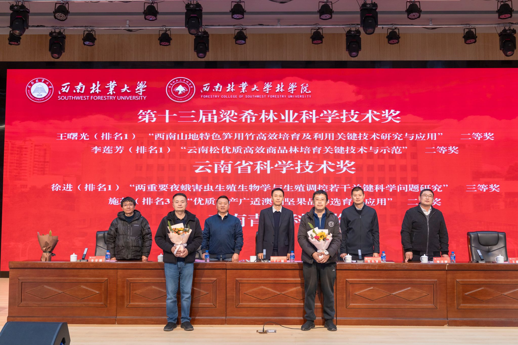 过去一年,林学院在兴滇英才支持计划、省部级科技奖励、创新创业大赛、国省奖等多个方面取得一定成绩。大会对在这一年来荣获省部级以上荣誉的优秀集体和个人进行表彰。丁仁展对学院取得的成绩和受表彰师生表示祝贺,同时对学院提出几点希望:一要整合资源,优化大资源;二要方向引领,凝聚大团队;三要需求导向,努力争取承担大项目;四是优化统筹,培育大成果;五是面向产业,争取实现大转化。