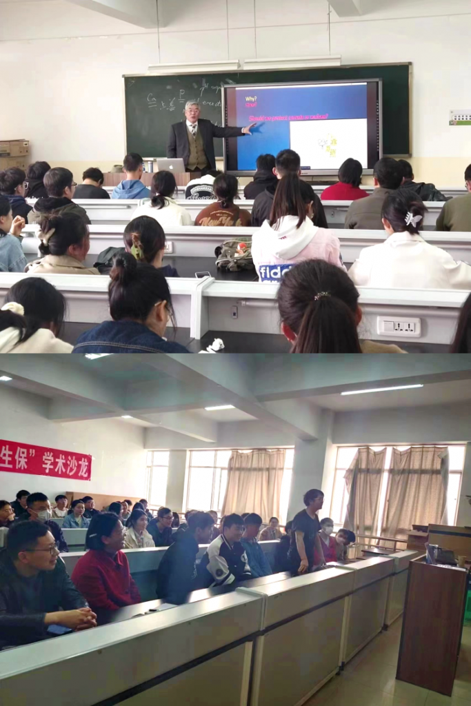 李老师以“上善”一词提问拉开讲座序幕,通过例子讲解“人类为什么要保护野生动植物”,最后结合专业角度引导学生开展专业思考“人类应该怎样去保护它们”的问题。讲座中李老师举出了许多生动案例,从仿生学、进化学的角度解释它们启示了人类的知识创新,是知识源泉;从人类生存资源方面,解释了他们对人类的重要性;从未来价值方面解释了物种的存在价值,理性判断等等。