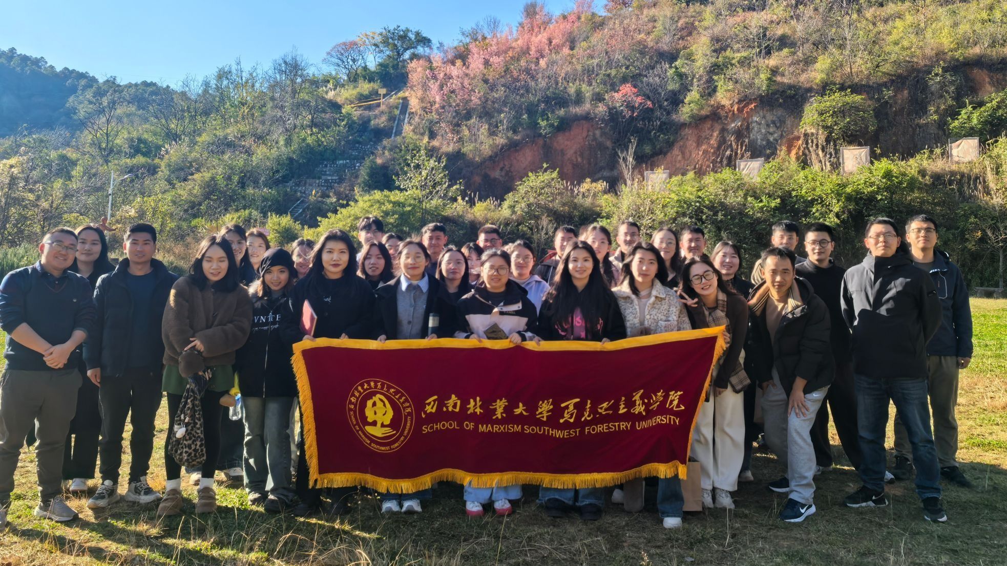 12月20日,马克思主义学院组织全体研究生赴昆明市北郊锡伯龙红色文化教育庄园开展红色文化主题团建活动。