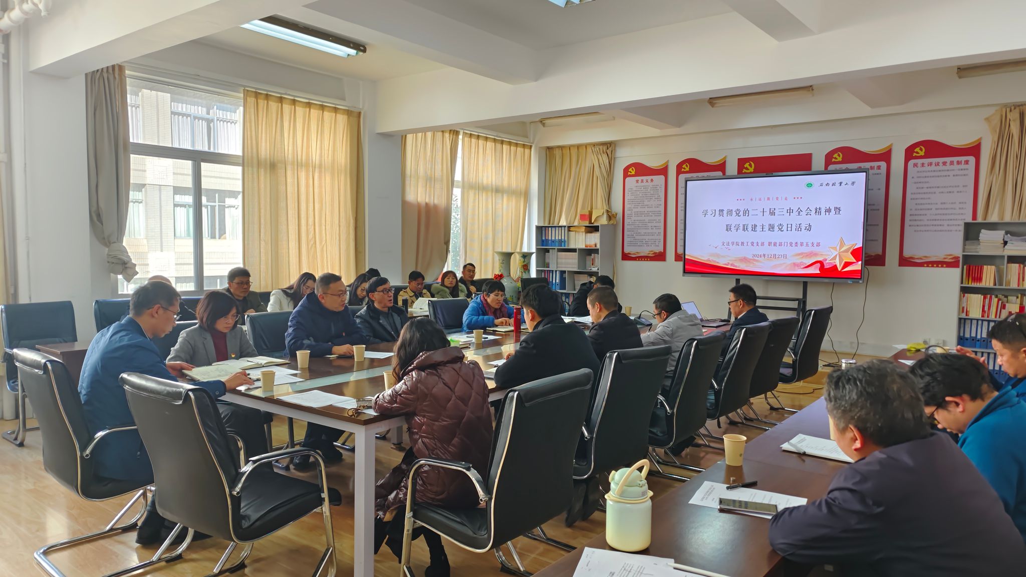 12月23日,文法学院教工党支部与学校职能部门党委第五支部联合开展“学习党的二十届三中全会精神”主题党日活动,校纪委书记武红星、两个支部的全体党员参加。活动由文法学院党委书记杨欣主持。