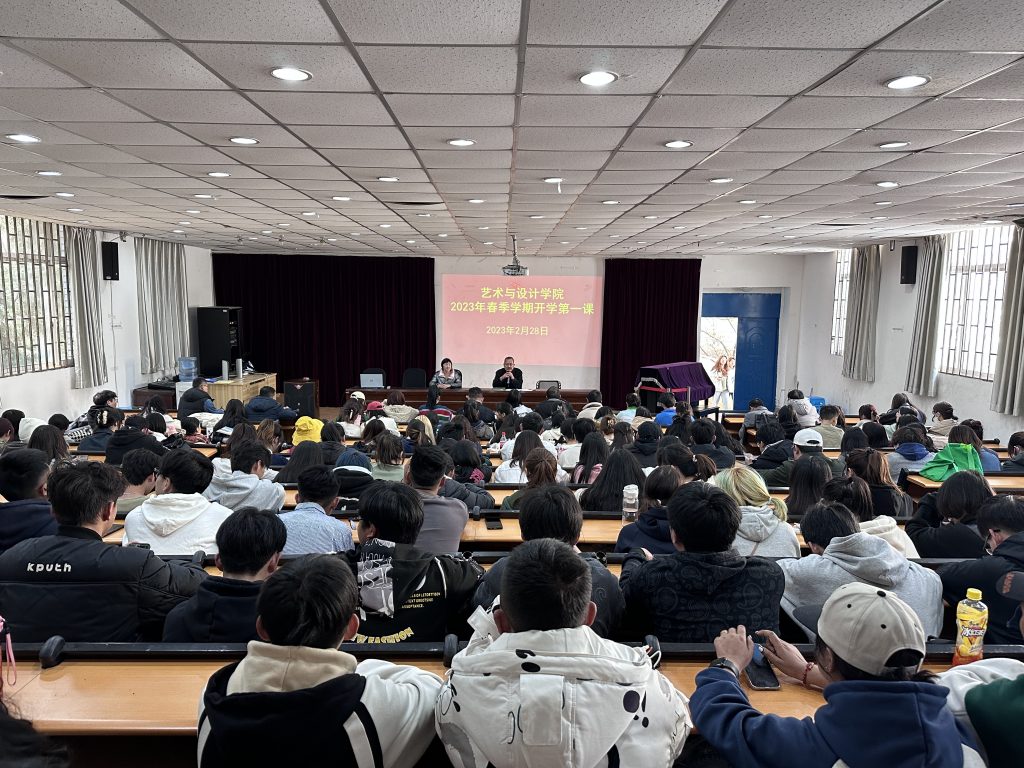 2月28日,艺术与设计学院在设计楼阶梯教室204组织开展2023年春季学期“开学第一课”。学院党委书记王宏虬、院长袁哲共同为全院辅导员和班主任老师、环境设计、绘画专业等200余名师生讲授“开学第一课”。