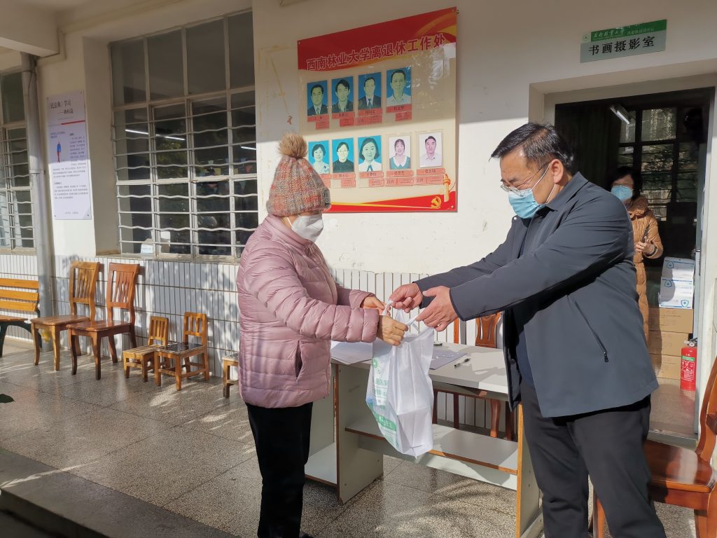 hdrpl工作人员在前期做实做细人员底册,工作人员在向重点人群发放“防疫礼包”的同时,并详细讲解如何正确使用“防疫礼包”及注意事项,并查看用火、用电、用气情况,提醒老人多休息并加强营养摄入。(来源:离退休工作处/文/图:柏顺文/审核:江林/复审:李颖/责任编辑:朱皓天)