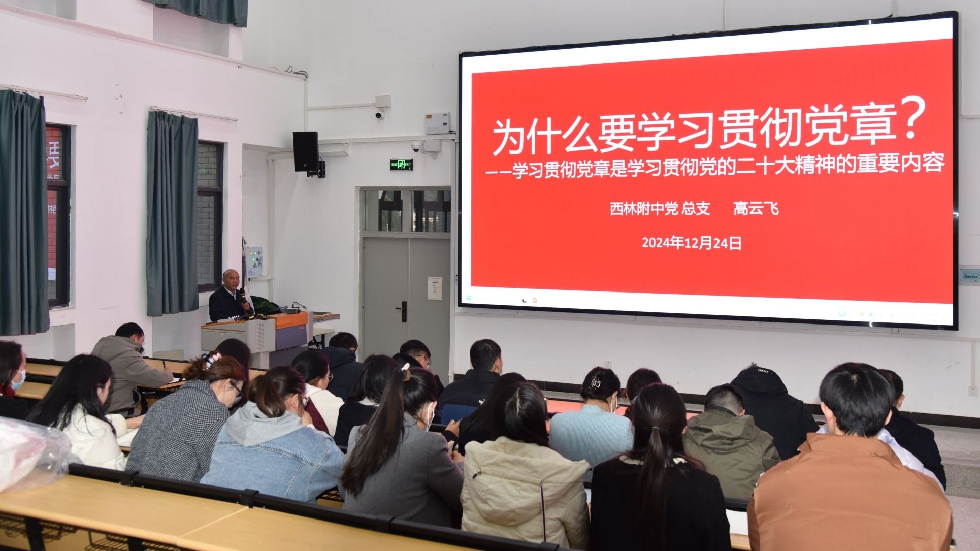 kaiyun体育附中党总支书记高云飞作《为什么要学习贯彻党章?——学习贯彻党章是学习贯彻党的二十大精神的重要内容》的专题讲座。高云飞表示,党员要深学党章要义,在学深悟透中践行初心使命,把学习党章精神同学习贯彻习近平新时代中国特色社会主义思想结合起来,进一步遵守党章、贯彻党章、维护党章。