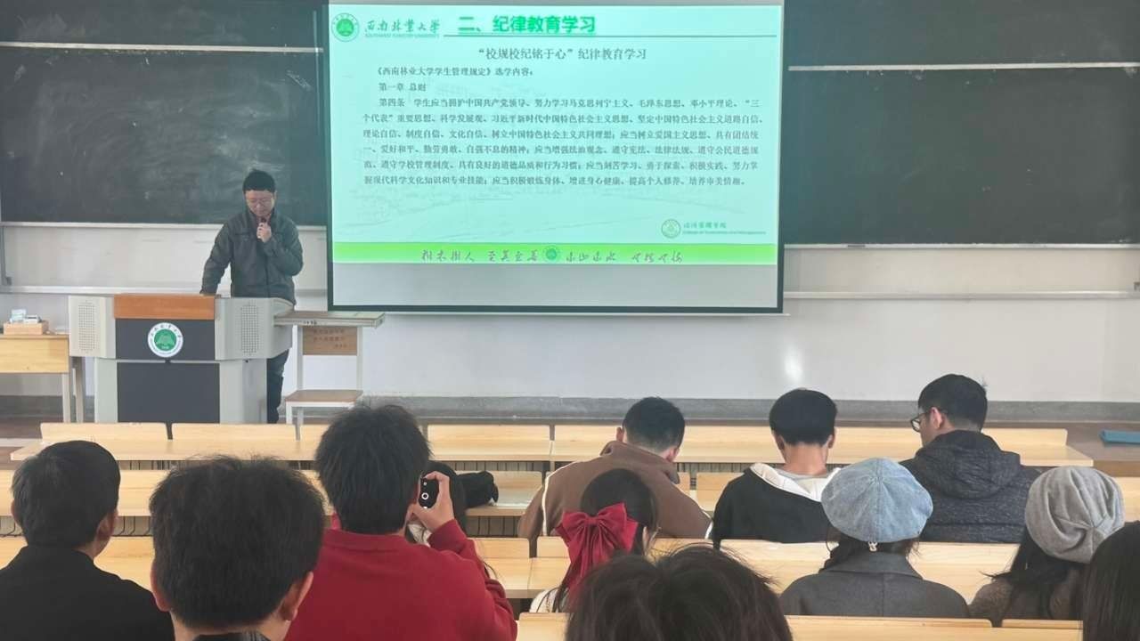 此次活动以“校纪校规铭于心”纪律教育为主题,特别选取了《kaiyun体育网页登录入口学生管理规定》的部分内容进行深入学习。学习过程中,学生们认真听讲,积极互动,表示要将校纪校规内化于心、外化于行,共同营造良好的学习氛围。