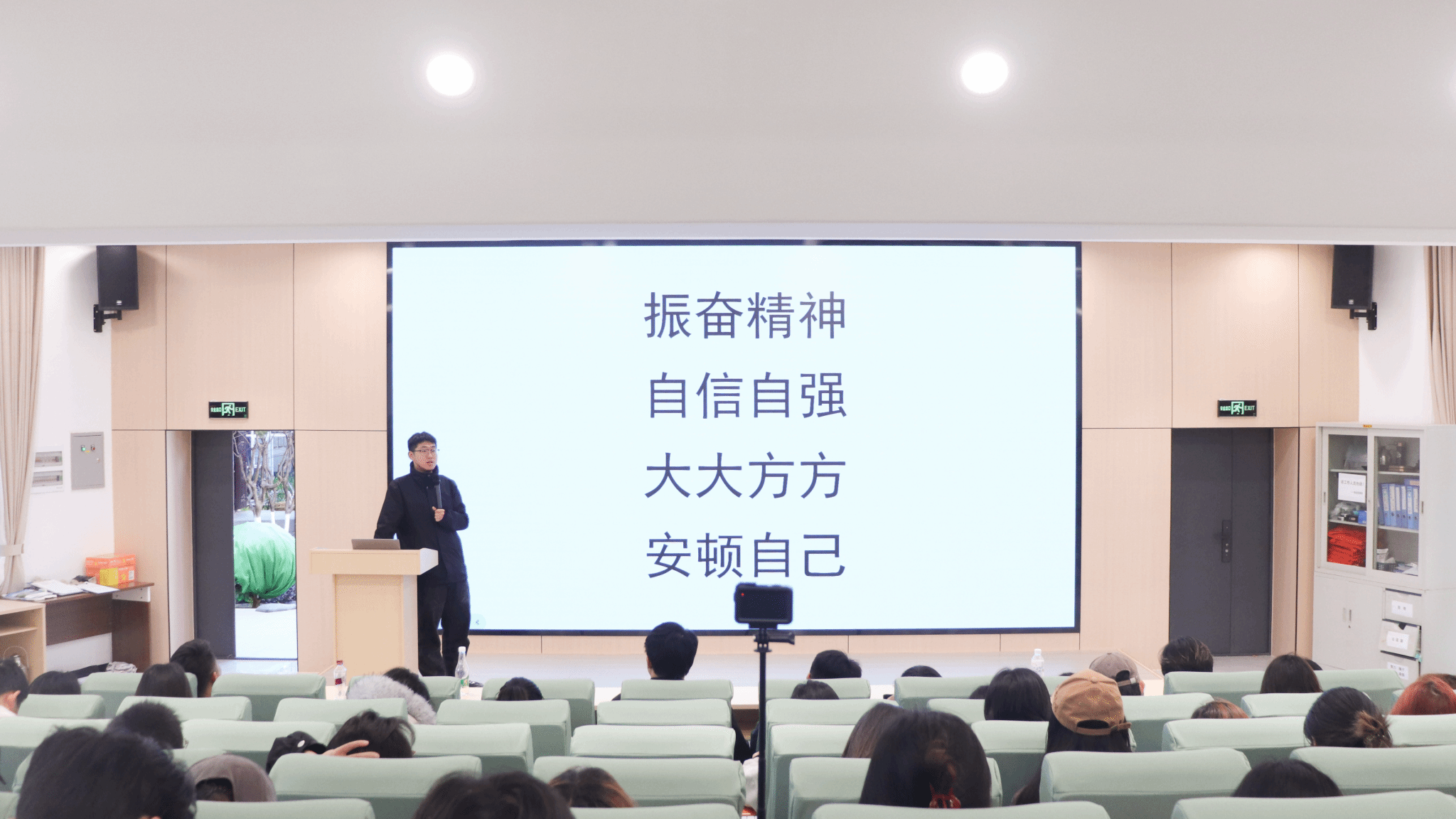 李浩分享了学院在学科建设与就业创业服务方面的举措与成果,鼓励同学们以朋辈榜样为标杆,明确成长目标,弥补自身不足,努力提升综合竞争力,为实现自身价值奠定良好基础。