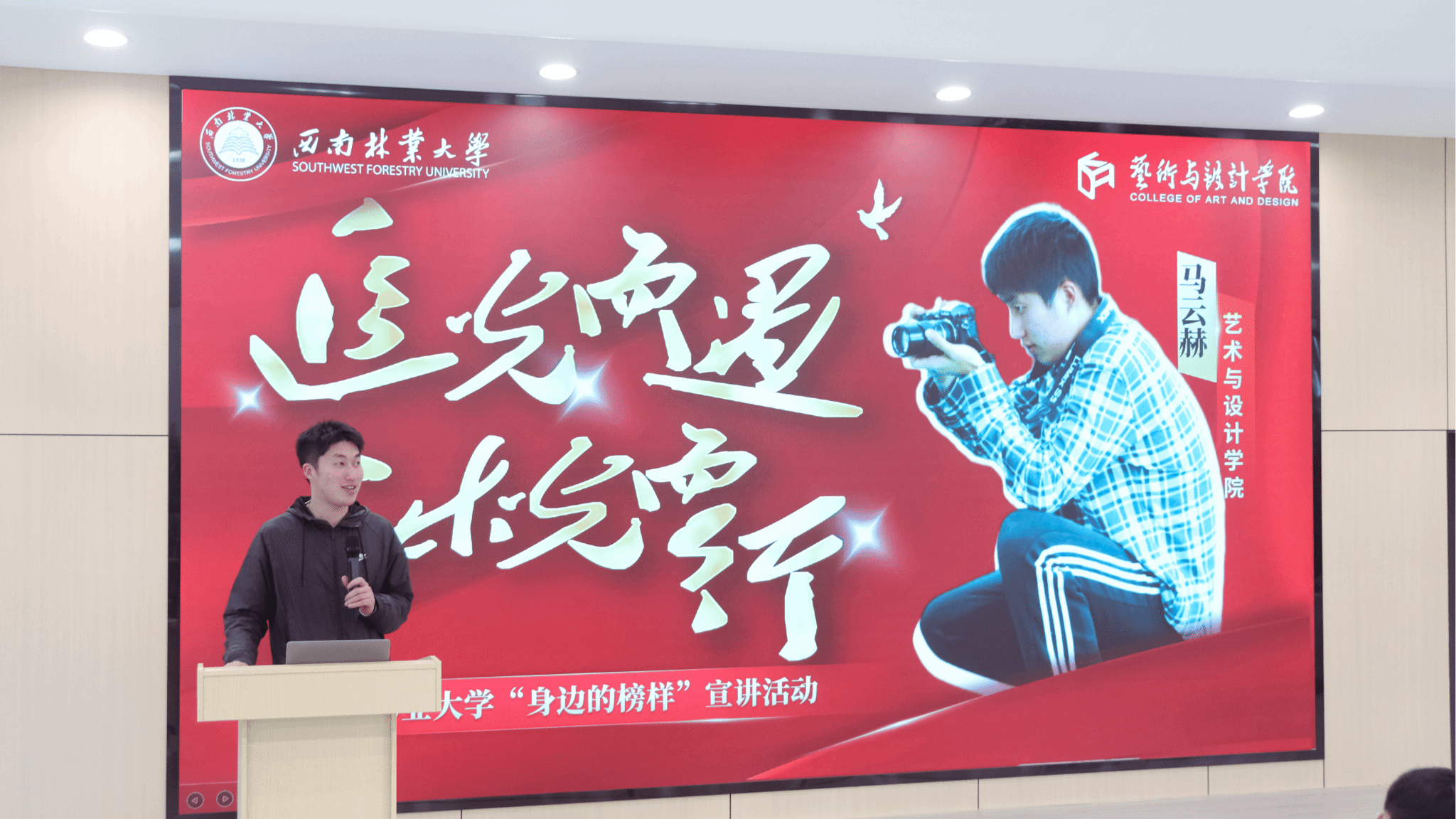 12月25日,艺术与设计学院(艺术博物馆)“身边的榜样”宣讲会在立德楼一楼报告厅举行。本次宣讲活动分别由荣获kaiyun体育2023年和2024年“大学生年度人物”的环境设计专业2021级学生夏于桐、视觉传达设计专业2021级学生马云赫主讲。学院团学工作负责人以及100余名学生参加宣讲会。学院党委副书记李浩主持会议。