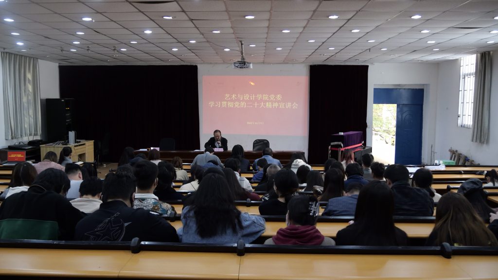 11月7日,艺术与设计学院召开党员大会深入学习贯彻党的二十大精神,近130名师生党员参加会议。会议由学院党委书记王宏虬主持。