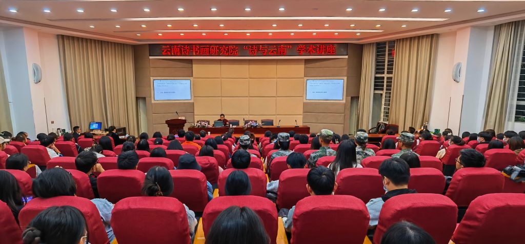为推动中华优秀传统文化教育向纵深拓展,11月4日,云南诗书画研究院举办“诗与云南”主题诗词讲座。本次活动由云南诗书画研究院和艺术博物馆主办,牧晨诗社承办。讲座邀请青年诗人张伟锋分享了诗词学习和创作经验,160余名师生到场聆听讲座。