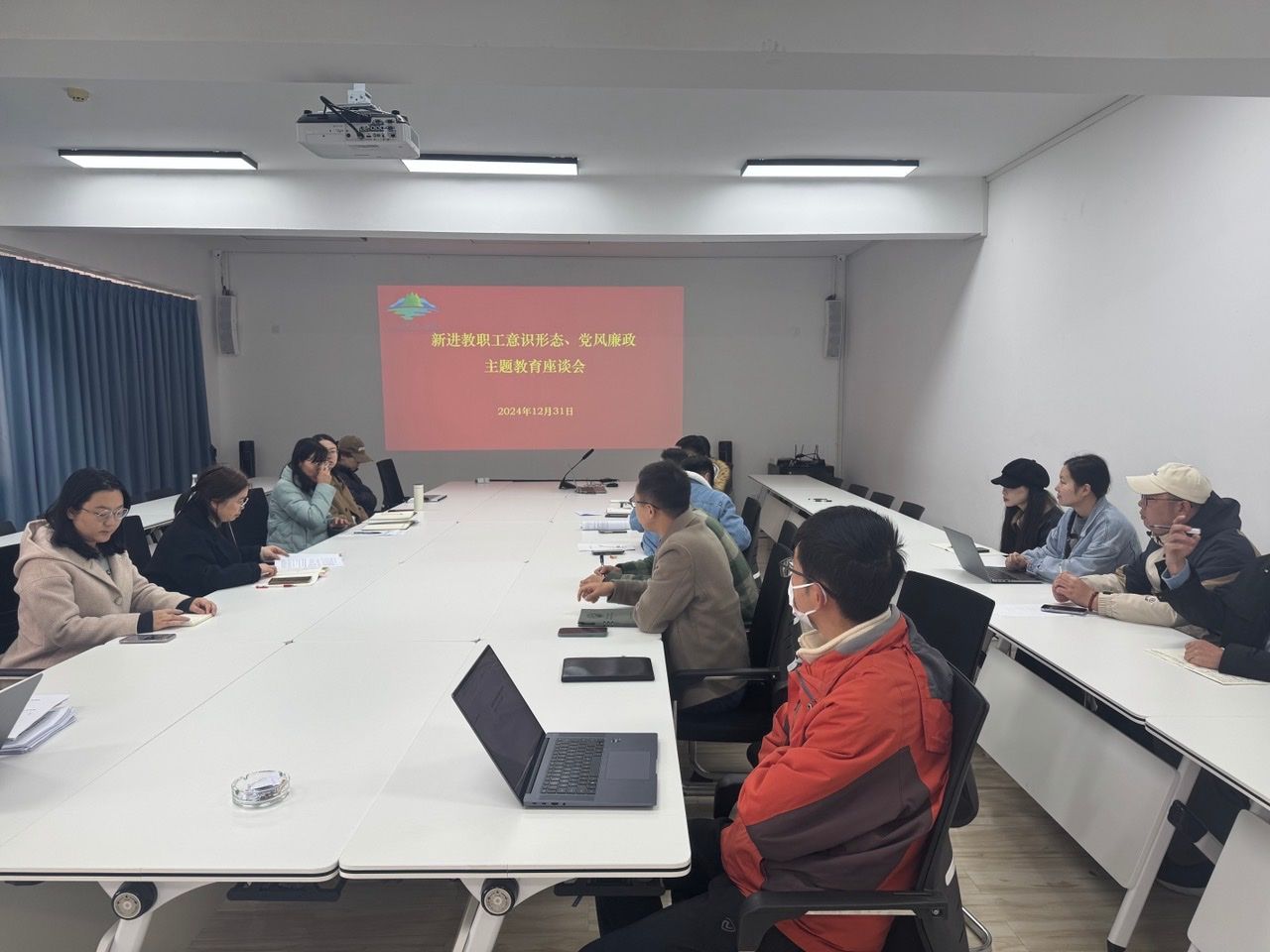 12月31日,生态与环境学院召开意识形态、党风廉政、师德师风主题教育会议,2024年新入职教师参加会议。