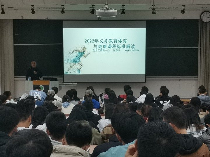 10月15日,体育学院邀请昆明市盘龙区教育科研中心体育教研员、高级教师郑春华为体育学院师生解读“义务教育体育与健康课程标准(2022年版)”。院长郭荣主持讲座,学院部分老师和大三年级学生参加本次讲座。