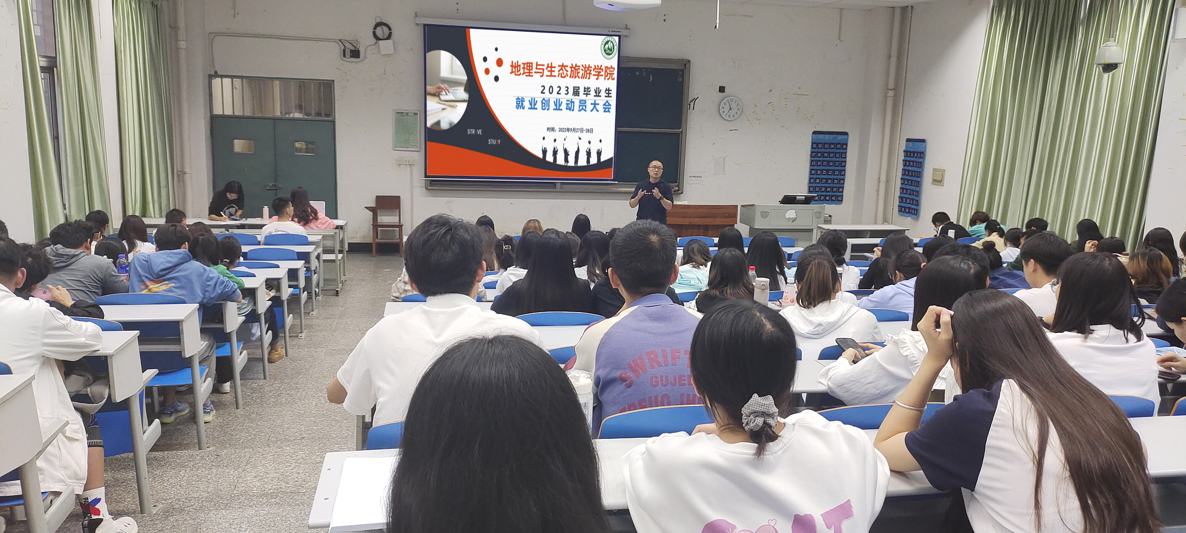 为了引导地理与生态旅游学院2023届毕业生认清当前的就业形势,帮助毕业生树立正确的择业观和就业观。9月27-28日,地理与生态旅游学院召开2023届学生就业创业动员大会。学院部分老师以及全体2023届毕业生参加会议。