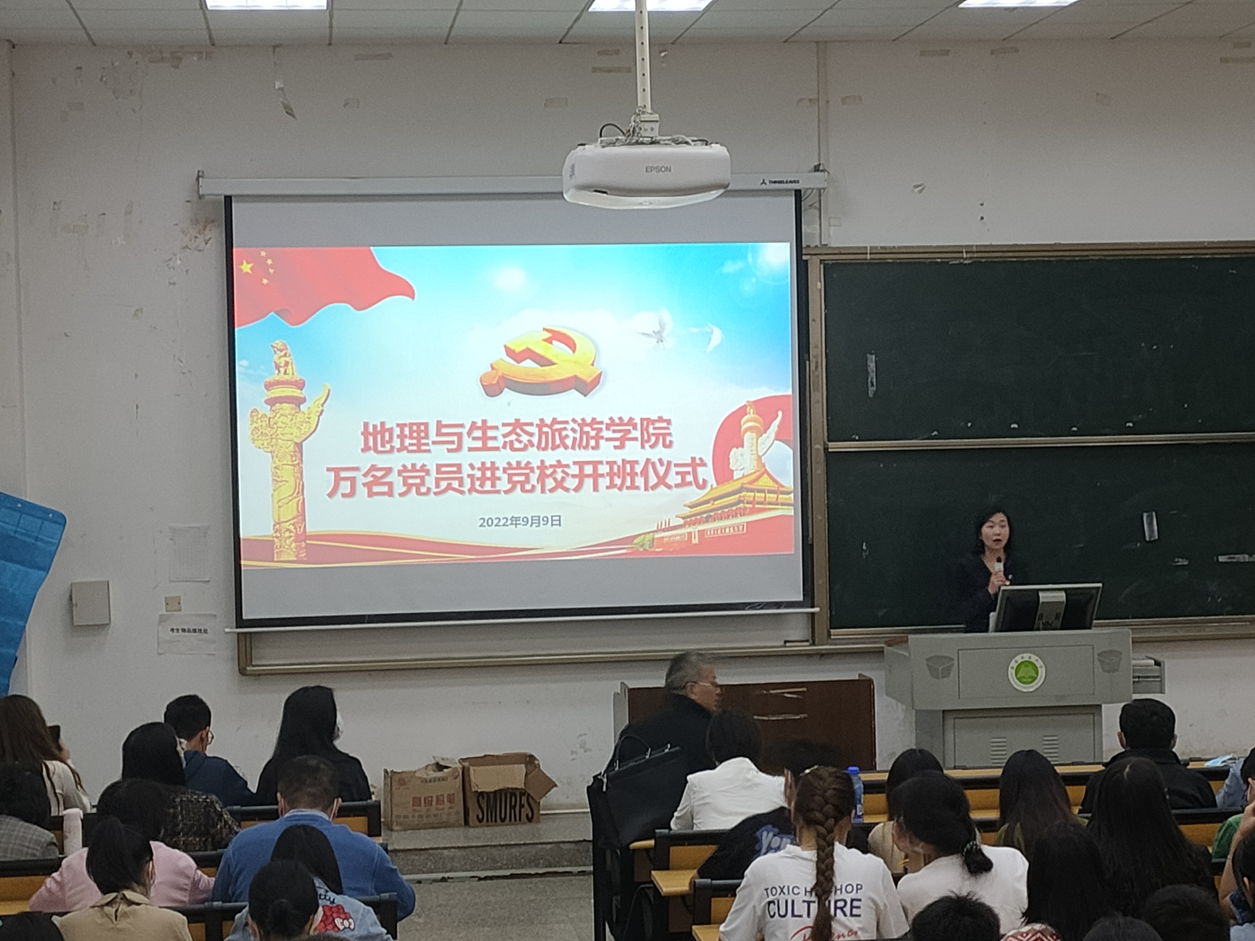 9月9日下午,地理与生态旅游学院举行2022年度“万名党员进党校”培训启动仪式,启动仪式由学院党委副书记张卓亚主持,学院全体教职工党员和学生党员参加启动仪式。