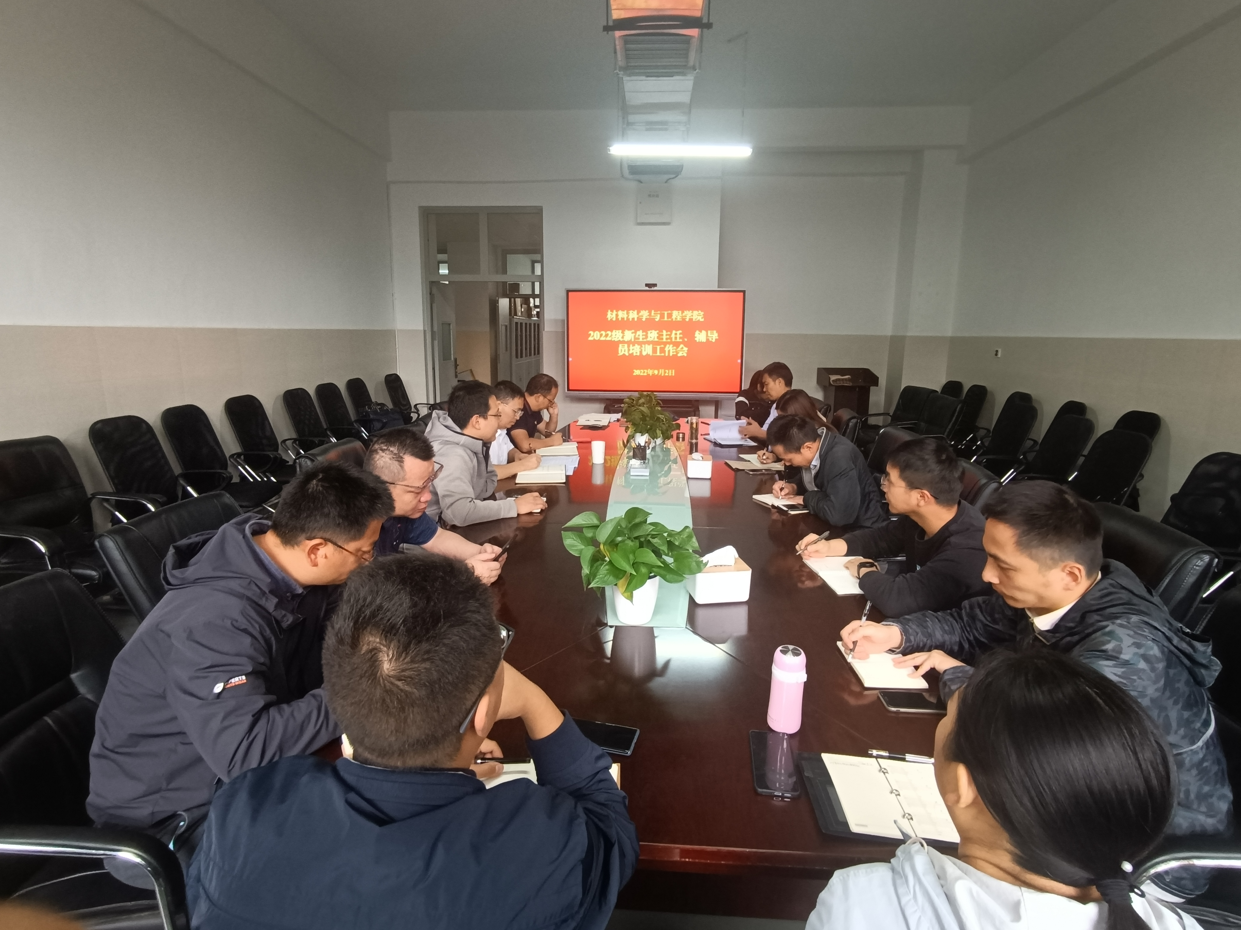 9月2日,材料科学与工程学院召开了2022级新生辅导员、班主任培训工作会。学院领导班子、2022级新生辅导员、班主任参加培训会。培训会由学院党委副书记孙浩主持。