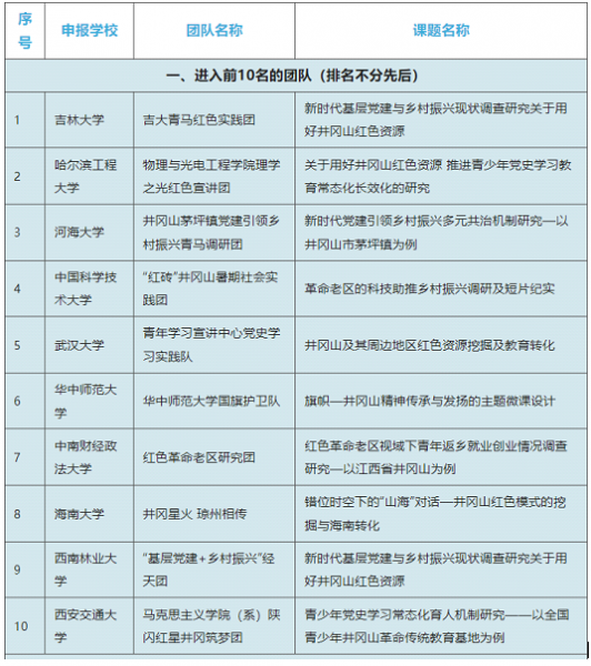 团中央井冈山教育基地微信公众号7月14日公告显示,经济管理学院“基层党建+乡村振兴”经天团成为云南省唯一一支拟入选2022年“井冈情·中国梦”全国大学生暑期社会实践专项活动前10名团队的团队。