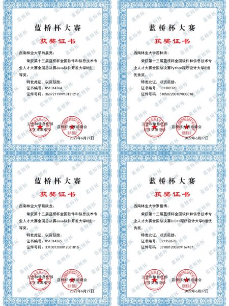 因疫情原因,比赛采用线上与线下相结合的方式进行,kaiyun体育学生参加了线上比赛。比赛过程中,2019级计算机科学与技术专业蔡欣龙同学顶住压力,在Java软件开发大学B组的比赛中,获得本科B组一等奖;2020级计算机科学与技术专业肖晨亮同学获得Java软件开发大学B组二等奖;2020级计算机科学与技术专业游林涛同学获得Python程序设计大学B组优秀奖;2020级计算机科学与技术专业罗俊博同学获得C/C++程序设计大学B组优秀奖。