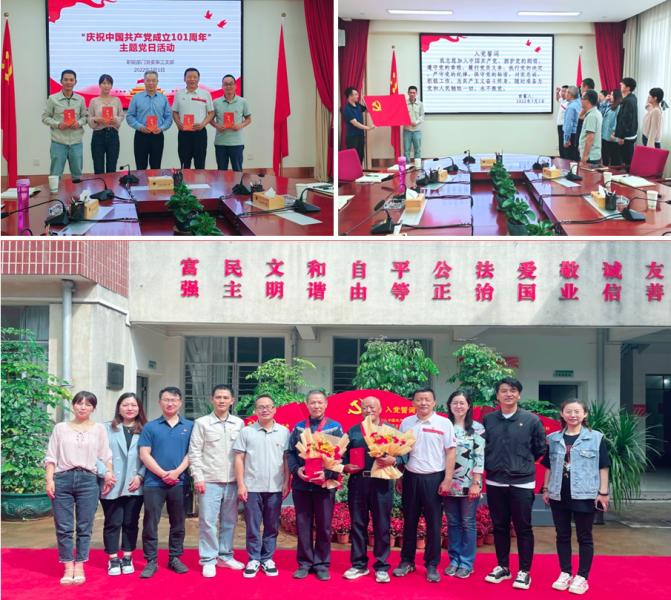 活动伊始,郭正春代表支部向上半年入党的5名党员发放政治生日贺卡,送上“生日寄语”,希望他们不忘初心、牢记使命,永葆共产党员的先进本色。接着,郭正春带领全体党员面向鲜红党旗,重温入党誓词,集体观看“云岭先锋”专题片《边关党旗红》,学习感悟边关地区党员干部在疫情防控、守边固边、兴边富民工作中担当作为、奋勇无畏、无私奉献的伟大精神和忠贞品格。