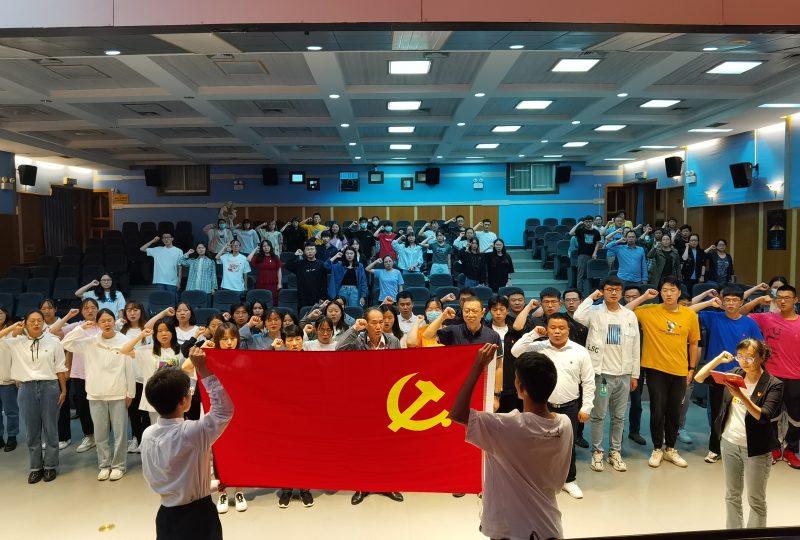 学院党委委员为2022年上半年新发展党员佩戴党徽,寄语他们为党的事业努力学习,发挥好先锋模范作用。随后,在学院党委副书记陈敏的带领下,今年上半年新发展的党员进行入党宣誓,老党员重温入党誓词。