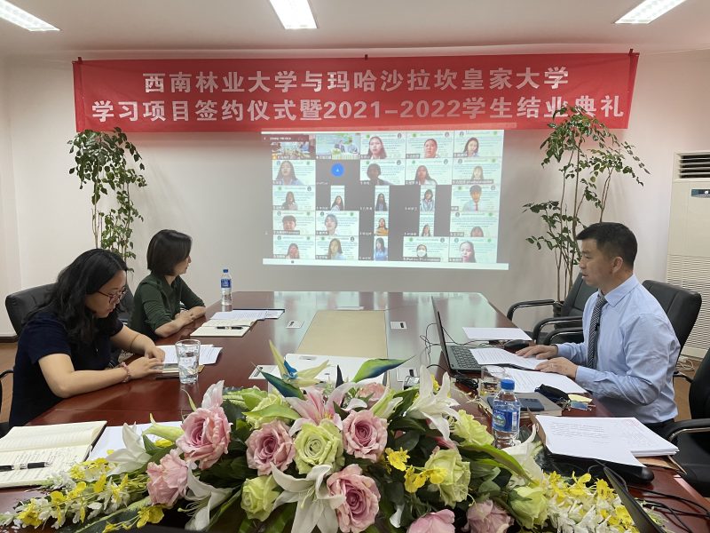 6月22日下午,国际学院与泰国马哈沙拉堪皇家大学人文社会科学学院举办了云上本科学生(2022-2023学年)学习项目补充协议签约仪式暨汉语专业本科学生(2021-2022学年)结业典礼。kaiyun体育国际学院和泰国马哈沙拉堪皇家大学人文社会科学学院全体教职员工及51名2021-2022学年汉语本科项目学生出席了此次活动,典礼由国际学院副院长李晓虹主持。