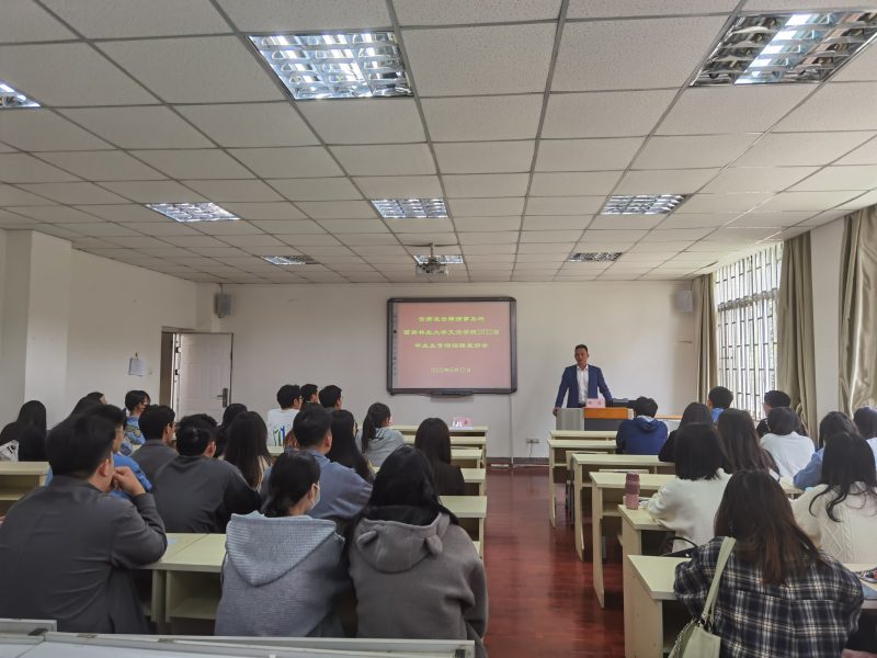 为更好地拓宽2022届毕业生的就业渠道,抓紧毕业生离校前充分就业,文法学院积极联系并于6月17日举办了云南凌云律师事务所专场招聘宣讲会。会议由学院党委副书记敖新宇主持。