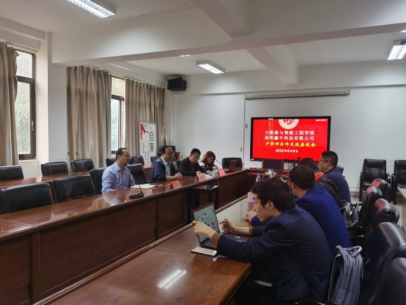 昆明鑫牛科技有限公司高伟肯定了大数据与智能工程学院的专业地位和人才培养方面的优势,简要介绍了昆明鑫牛科技有限公司的整体概况,发展现状和未来人才需求等方面与参会人员进行了介绍和交流,表达了与我院合作的意愿,并就校企合作的具体议题进行了深入的讨论,如联合举办技术创新比赛、组织创新能力训练营、开设企业课程,共建实验室助力科研协同创新等方法来培养和选拔优秀技术人才。