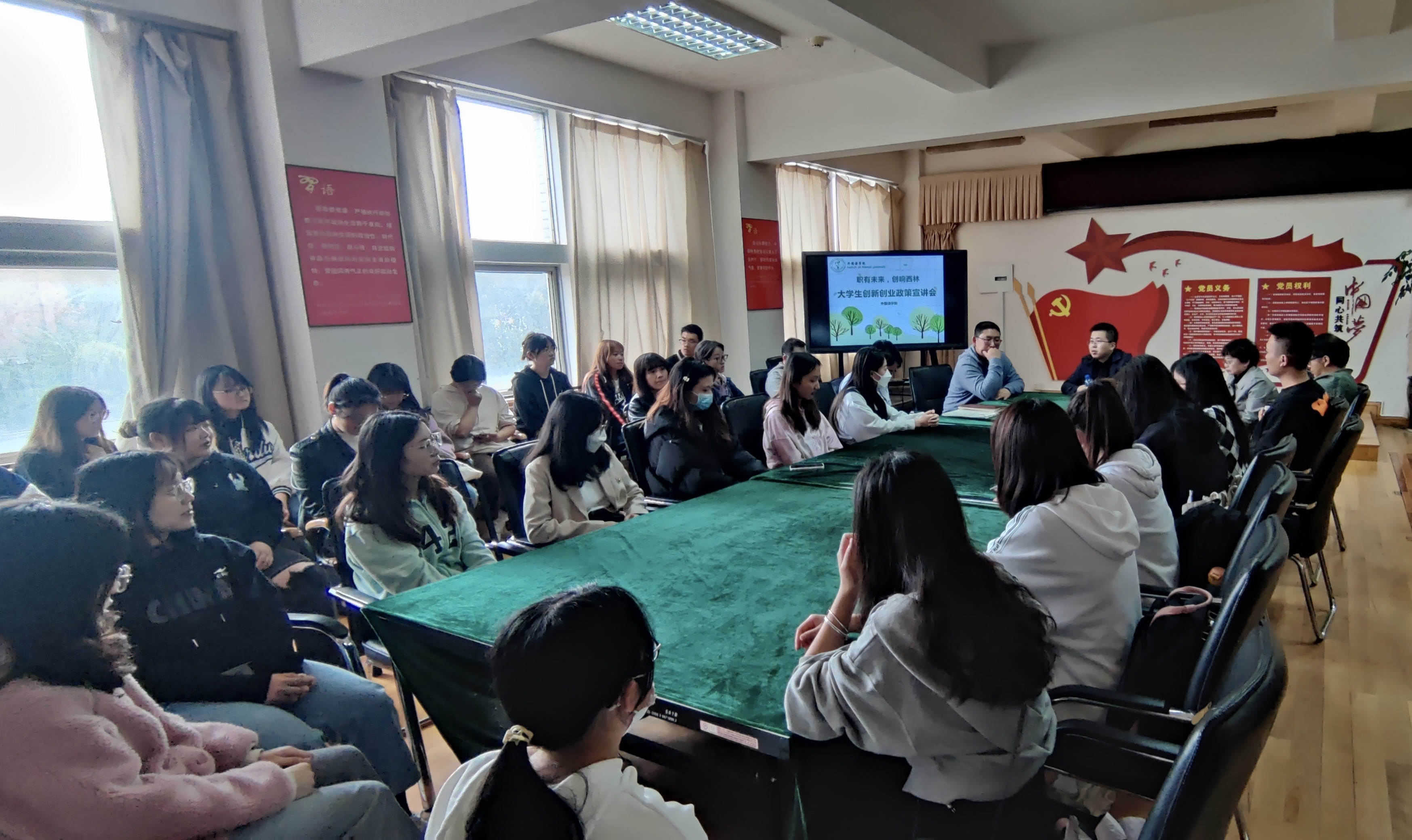 为做好毕业生就业创业工作,落实好就业创业政策宣传工作,外国语学院于5月16日召开“职有未来,创响kaiyun体育”——学生创新创业政策宣讲会。院长李秀梅、副院长饶耀平、党委副书记李法营、学工办主任李凌出席会议,辅导员王光铭及2022届毕业班代表参会。此次宣讲特别邀请到云南大学滇池学院创新创业学院院长、教育部首批万名优秀创新创业导师徐东明出席。